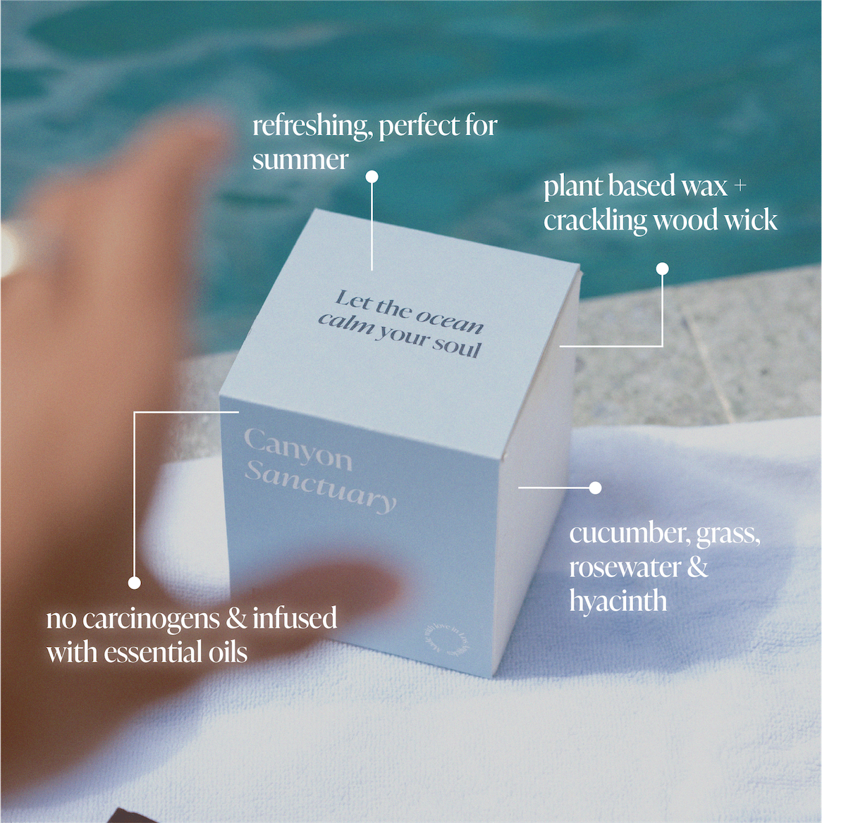 Create your own calming sanctuary with this fresh floral candle—a personal favorite of our founder. Designed to fill your space with tranquil vibes and serene energy, Canyon Sanctuary blends essential oils with notes of jasmine, rosewood, and violet to transport you to a peaceful Southern California canyon retreat.